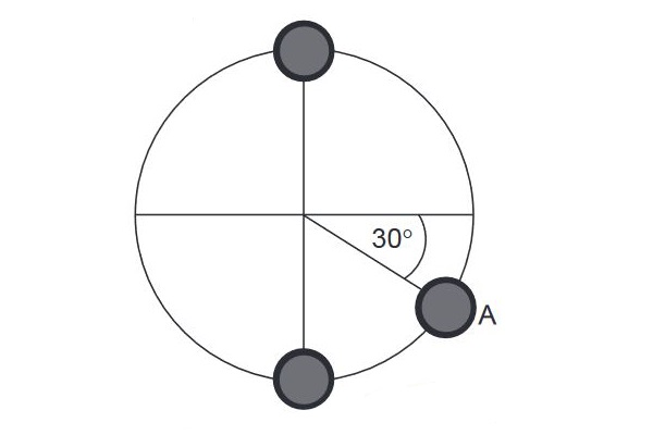 Sebuah benda dengan massa 5 kilogram diikat tali dan diputar pada suatu bidang vertikal. Lingkaran dalam bidang itu adalah suatu lingkaran dengan jari-jari 1,5 m. Jika kecepatan sudut 8 rad/s dan besarnya tetap serta g = 10 m/s2, maka tegangan tali pada saat benda berada di titik A adalah ....